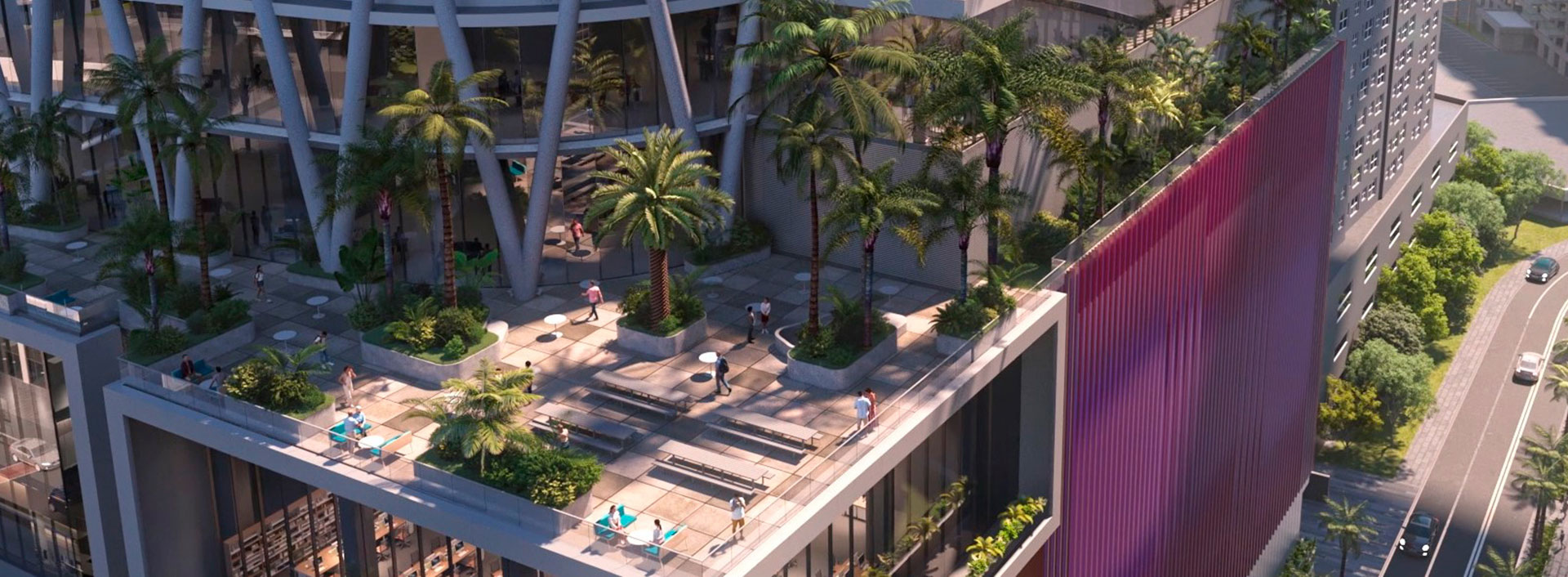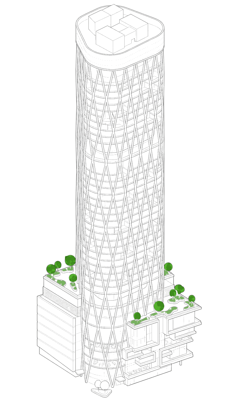 Column-free floors, floor-to-ceiling glazing, and landscaped terraces create spaces that inspire collaboration and focus. Curated retail, dining, and wellness amenities enhance daily life, while thoughtful architecture and sustainable systems ensure a human-centered environment.